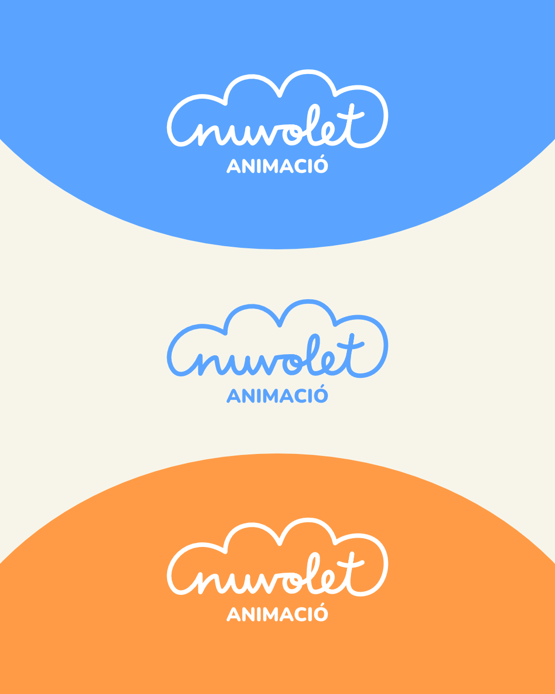 Identidad corporativa para Nuvolet Animació. Logotipo en diferentes versiones y definición de paleta con color principal y secundarios.